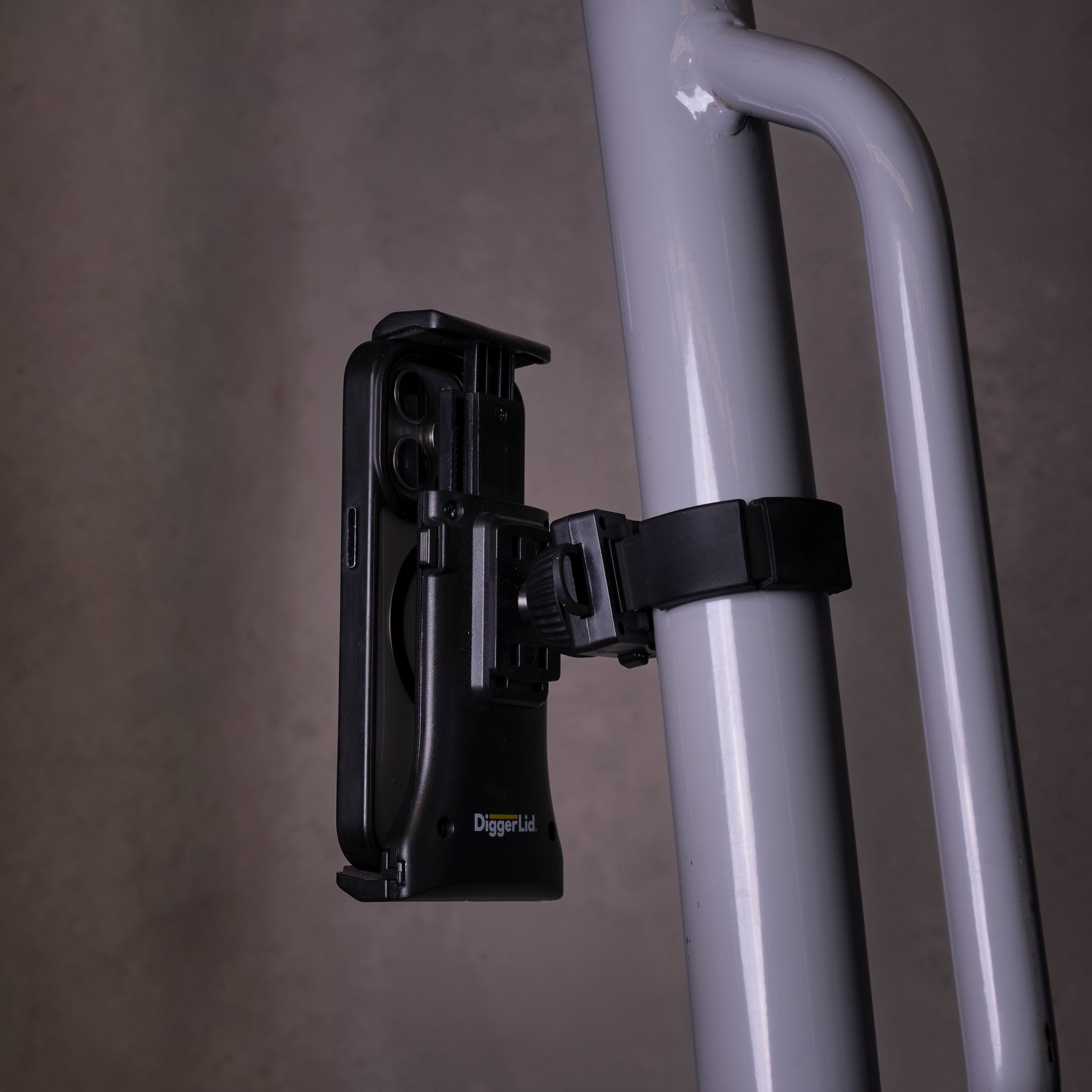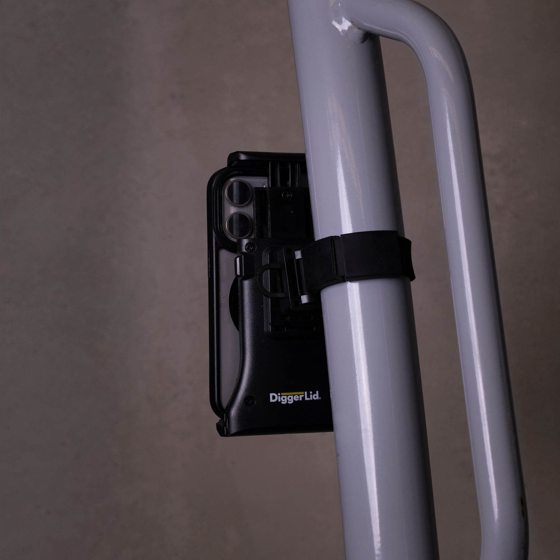 Mounts directly to the ROPS/frame of your excavator to any bar 20mm - 55mm with the strap mount, or to any flat surface with the super strong suction cup. 2 buttons, either side of the back panel let the spine adjustment slide up to allow for larger devices.