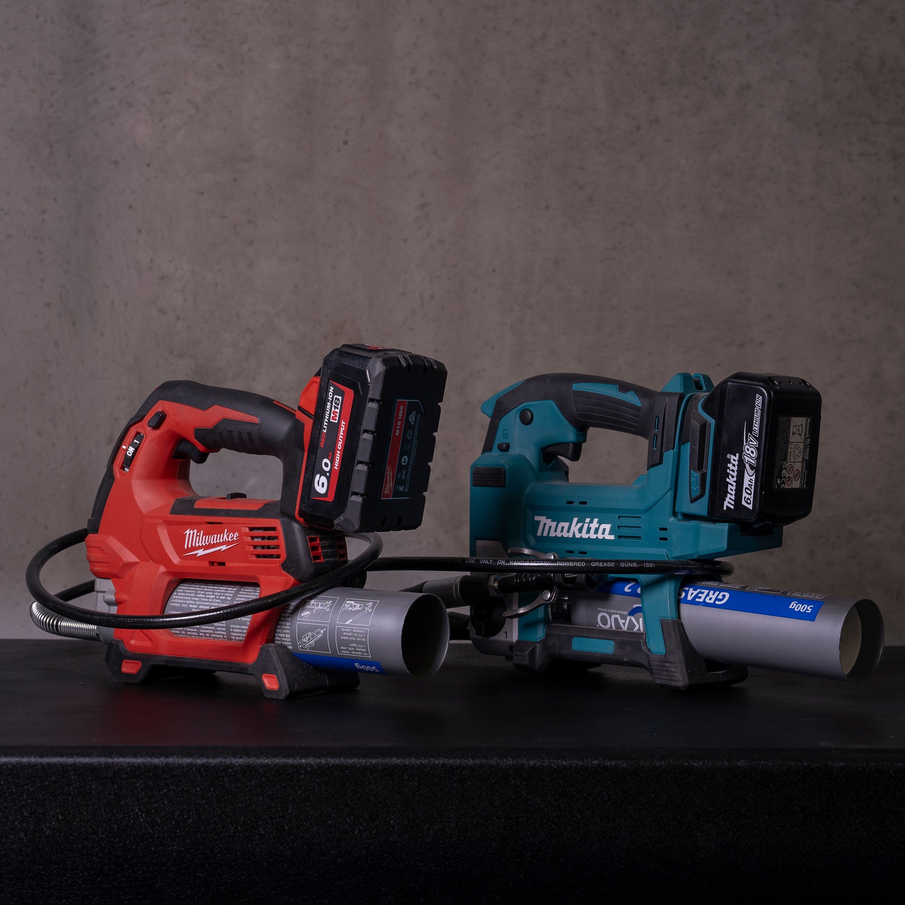 Compatible with our manual gun options or battery operated guns via adapter available for all major battery grease gun manufacturers including Milwaukee, Makita, Dewalt, Macnaught and more ...